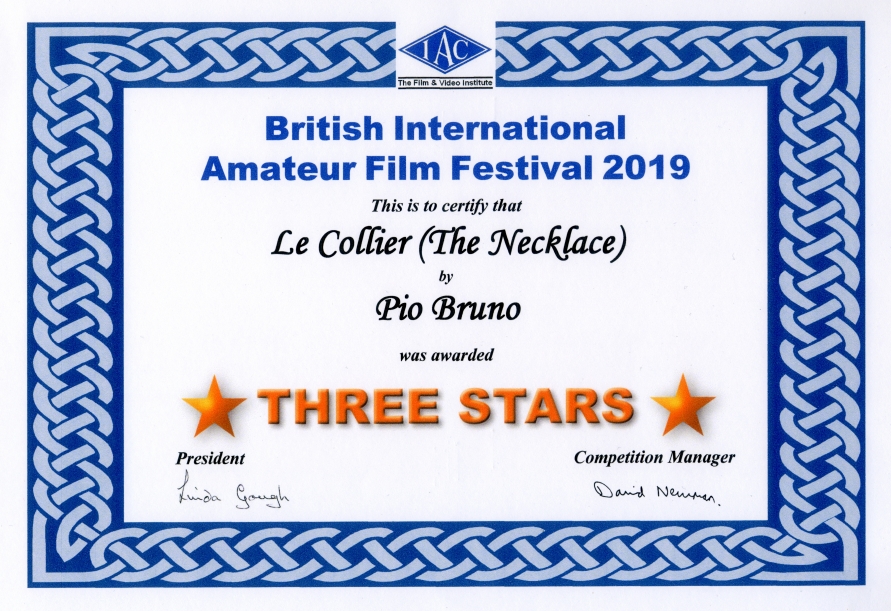 "Best Amateur Film" al Festival Internazionale "Cult Critic Movie Awards" a Calcutta in India (nov.2018) |