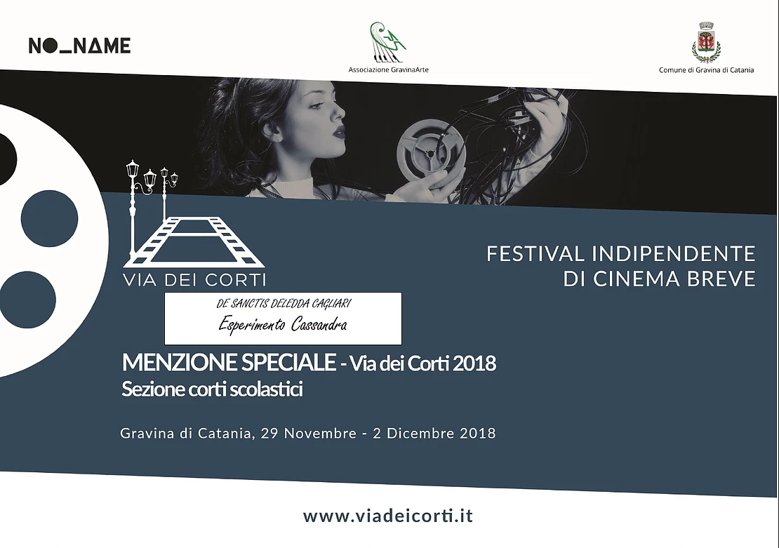 ![]() Anche "Esperimento Cassandra" riceve una Menzione Speciale (sezione Corti Scolastici) al "Festival Indipendente di Cinema Breve" di Gravina di Catania |