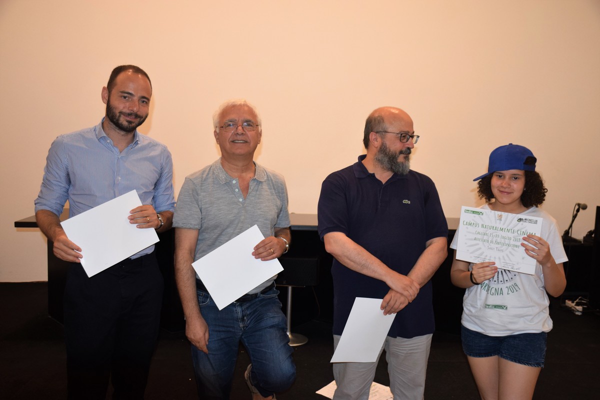 Sandy Trudu alla cerimonia di consegna degli attestati di partecipazione, alla presenza di Umberto Ticca, Assessore del Comune di Cagliari, Marco Asunis presidente nazionale della FICC (Federazione italiana dei Circoli del Cinema) e Antonello Zanda, Direttore della Cineteca Sarda |